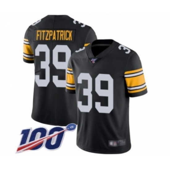 >Youth Pittsburgh Steelers #39 Minkah Fitzpatrick Black Alternate Vapor Untouchable Limited Player 100th Season Football Jersey