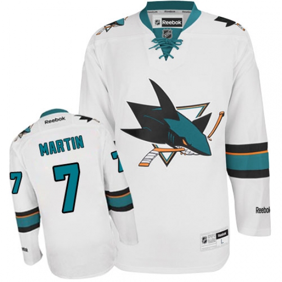 Home>NHL>San Jose Sharks>Paul Martin>Youth Reebok San Jose Sharks #7 Paul Martin Authentic White Away NHL Jersey