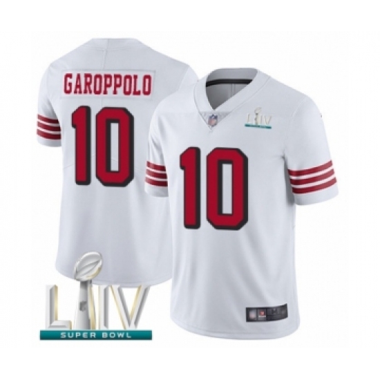Men's San Francisco 49ers #10 Jimmy Garoppolo Limited White Rush Vapor Untouchable Super Bowl LIV Bound Football Jersey