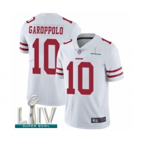 >Youth San Francisco 49ers #10 Jimmy Garoppolo White Vapor Untouchable Limited Player Super Bowl LIV Bound Football Jersey