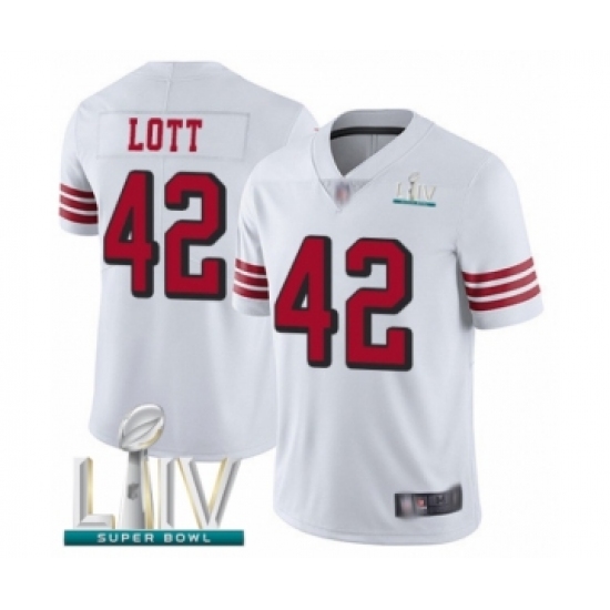 >Youth San Francisco 49ers #42 Ronnie Lott Limited White Rush Vapor Untouchable Super Bowl LIV Bound Football Jersey