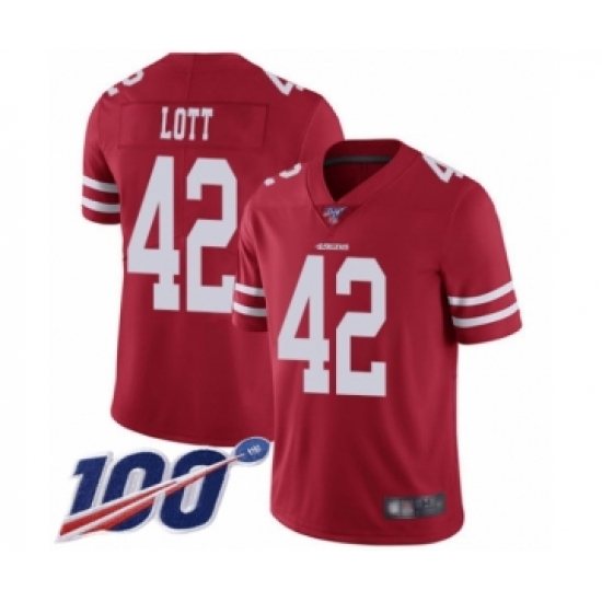 >Youth San Francisco 49ers #42 Ronnie Lott Red Team Color Vapor Untouchable Limited Player 100th Season Football Jersey