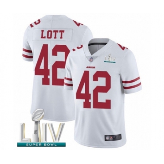 >Youth San Francisco 49ers #42 Ronnie Lott White Vapor Untouchable Limited Player Super Bowl LIV Bound Football Jersey