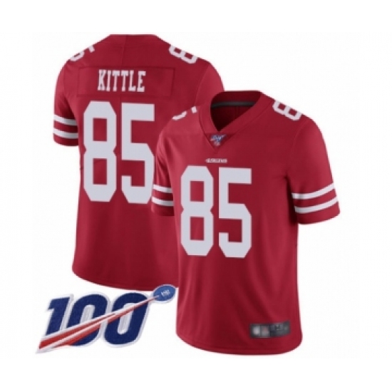 Youth San Francisco 49ers #85 George Kittle Red Team Color Vapor Untouchable Limited Player 100th Season Football Jersey
