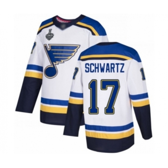 Men's St. Louis Blues #17 Jaden Schwartz Authentic White Away 2019 Stanley Cup Final Bound Hockey Jersey