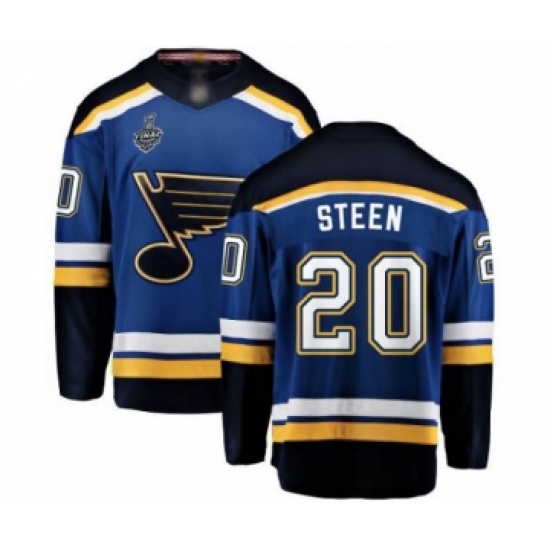 >Youth St. Louis Blues #20 Alexander Steen Fanatics Branded Royal Blue Home Breakaway 2019 Stanley Cup Final Bound Hockey Jersey