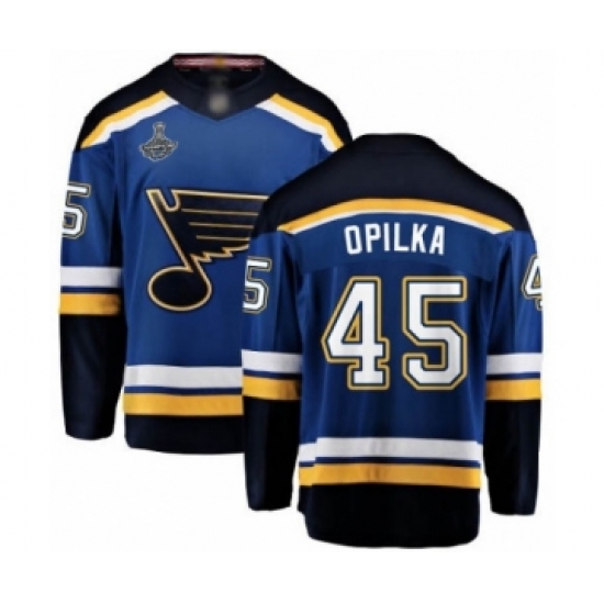 >Youth St. Louis Blues #45 Luke Opilka Fanatics Branded Royal Blue Home Breakaway 2019 Stanley Cup Champions Hockey Jersey