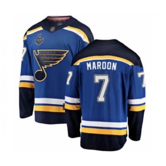 >Youth St. Louis Blues #7 Patrick Maroon Fanatics Branded Royal Blue Home Breakaway 2019 Stanley Cup Final Bound Hockey Jersey