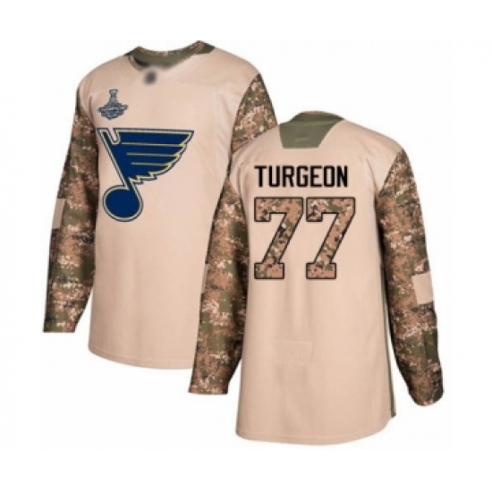Youth St. Louis Blues #77 Pierre Turgeon Authentic Camo Veterans Day Practice 2019 Stanley Cup Final Bound Hockey Jersey