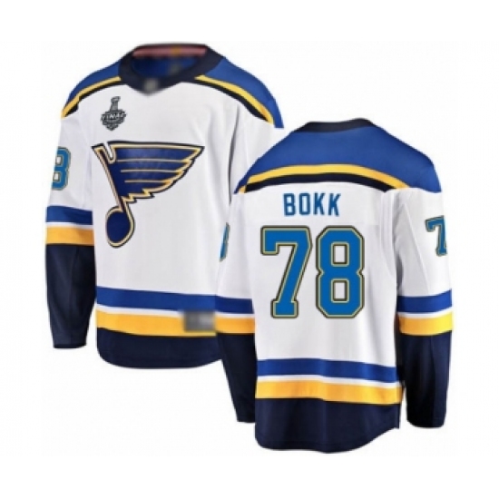 Men's St. Louis Blues #78 Dominik Bokk Authentic White Away 2019 Stanley Cup Champions Hockey Jersey