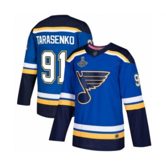 Youth St. Louis Blues #91 Vladimir Tarasenko Authentic Royal Blue Home 2019 Stanley Cup Champions Hockey Jersey