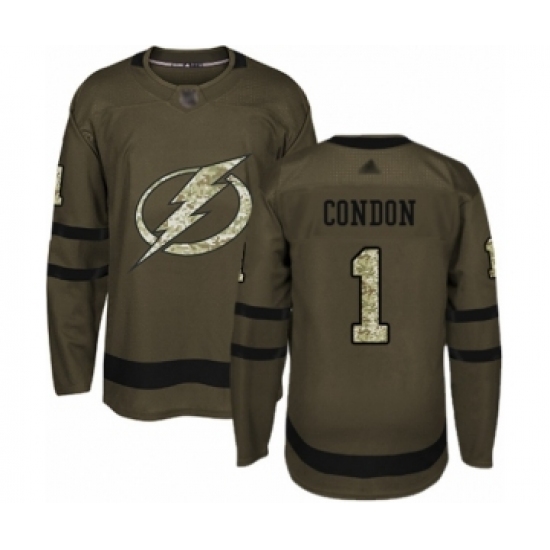 Youth Tampa Bay Lightning #1 Mike Condon Authentic Green Salute to Service Hockey Jersey