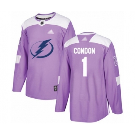 >Youth Tampa Bay Lightning #1 Mike Condon Authentic Purple Fights Cancer Practice Hockey Jersey