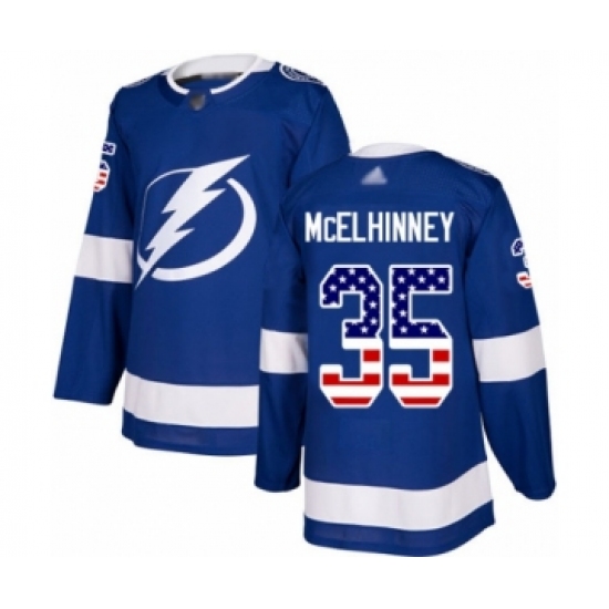 >Youth Tampa Bay Lightning #35 Curtis McElhinney Authentic Blue USA Flag Fashion Hockey Jersey