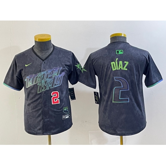 >Youth Tampa Bay Rays #2 Yandy Diaz Charcoal 2024 City Connect Player Number Limited Cool Base Jerseys