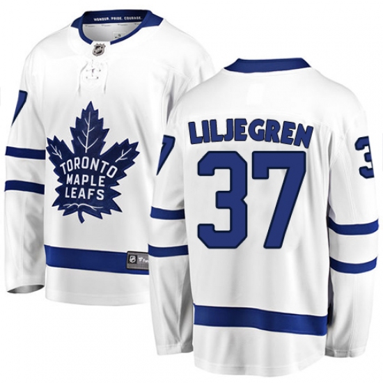 Youth Toronto Maple Leafs #37 Timothy Liljegren Authentic White Away Fanatics Branded Breakaway NHL Jersey