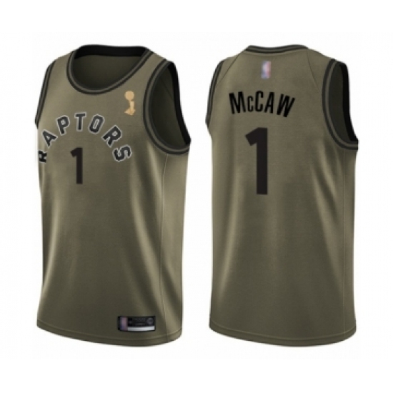 >Youth Toronto Raptors #1 Patrick McCaw Swingman Green Salute to Service 2019 Basketball Finals Champions Jersey