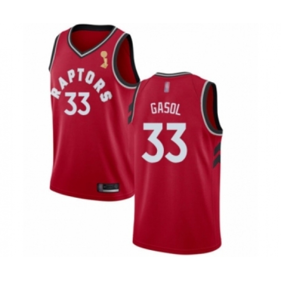 Youth Toronto Raptors #33 Marc Gasol Swingman Red 2019 Basketball Finals Champions Jersey - Icon Edition