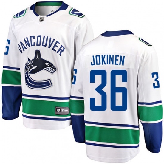 >Youth Vancouver Canucks #36 Jussi Jokinen Fanatics Branded White Away Breakaway NHL Jersey
