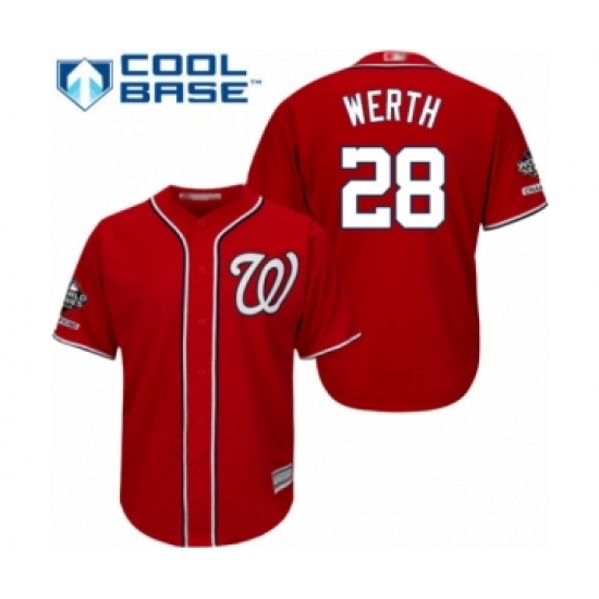 >Youth Washington Nationals #28 Jayson Werth Authentic Red Alternate 1 Cool Base 2019 World Series Champions Baseball Jersey