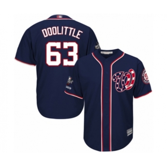 >Youth Washington Nationals #63 Sean Doolittle Authentic Navy Blue Alternate 2 Cool Base 2019 World Series Champions Baseball Jersey